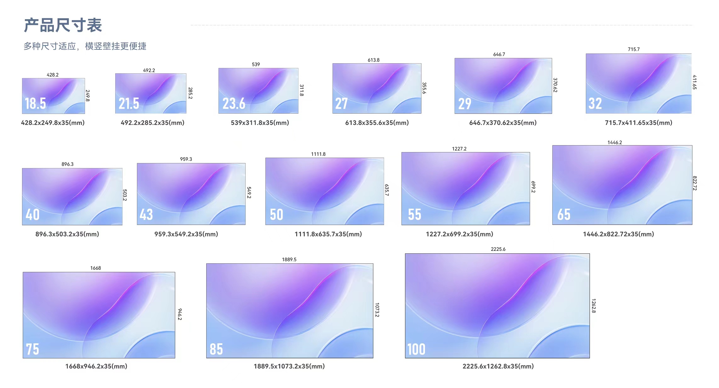 | حجم شاشة LCD | 21.5/32 "/43"/50 "/55"/65 "اختياري |
